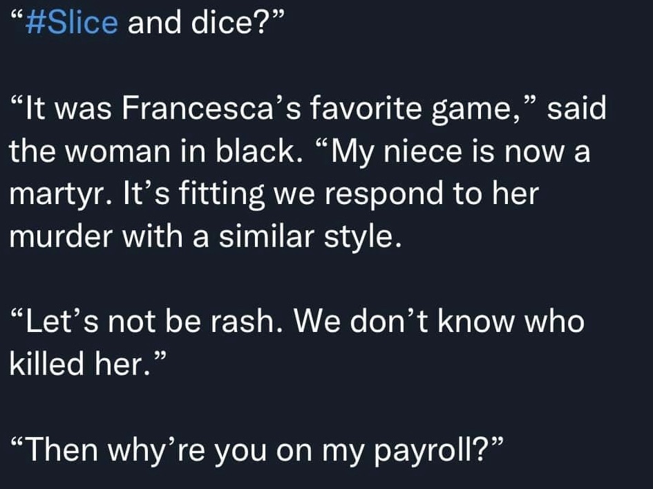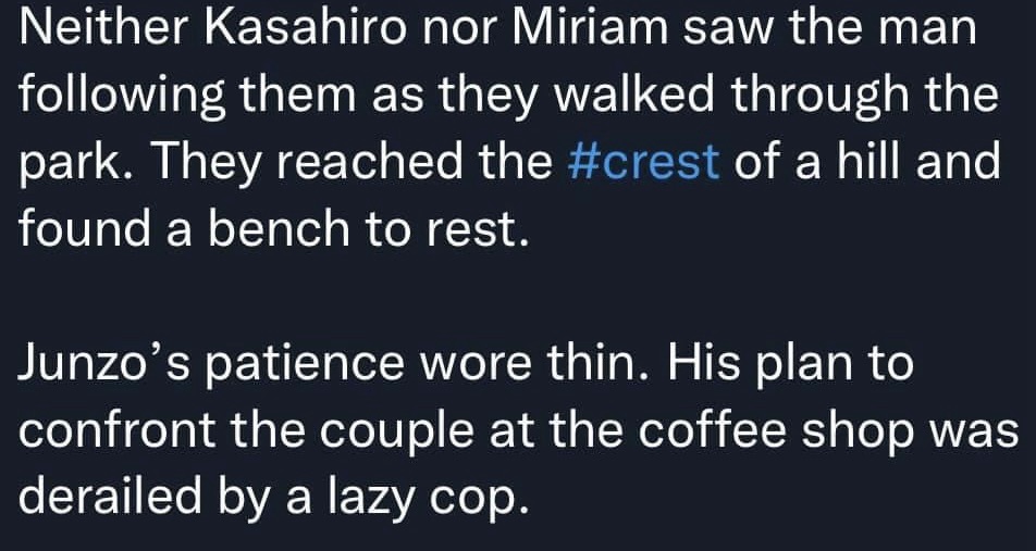 The collection of micro fiction below is fueled by #vss365 prompts and focuses on crime, bizarre rituals, and unknown threats.